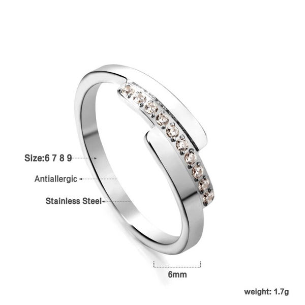De Eclipse Spark Ring combineert moderne elegantie met een subtiel speels ontwerp. Het open ontwerp met overlappende uiteinden creëert een vloeiende beweging, die wordt versterkt door een rij schitterende zirkonia-steentjes.