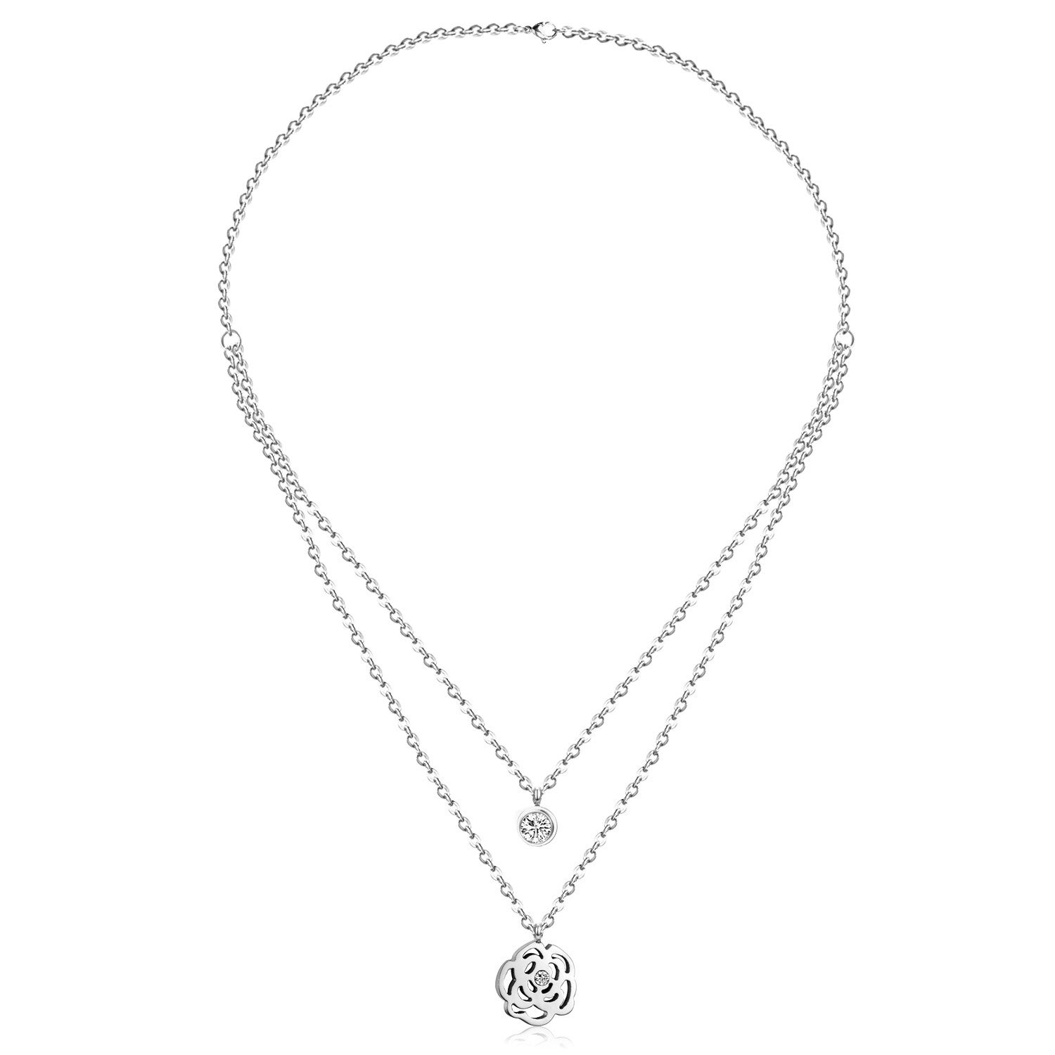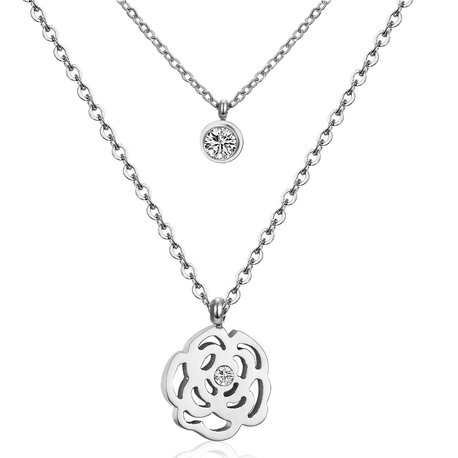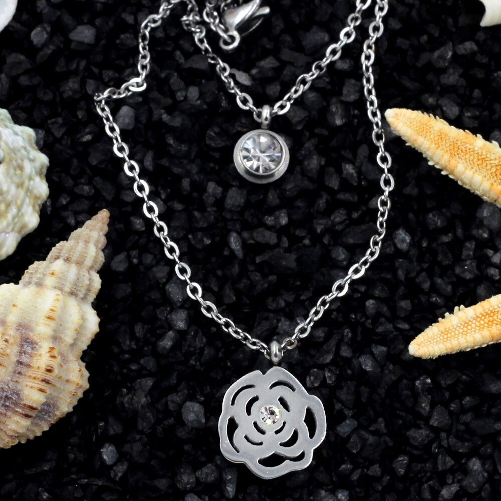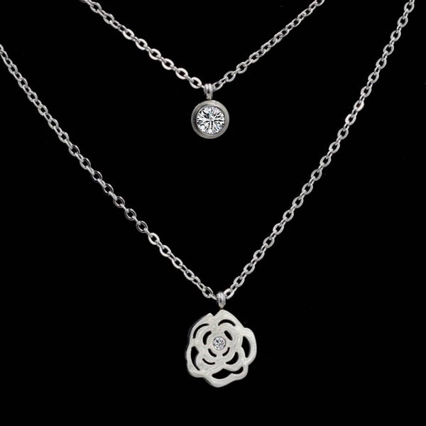 Ketting dubbel zilver met bloem en steentjes