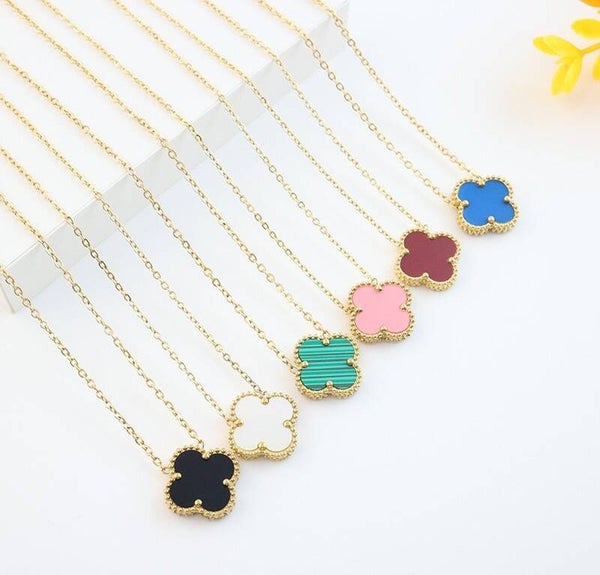 Ketting goud met klavertje zwart