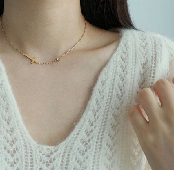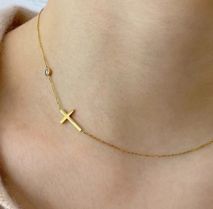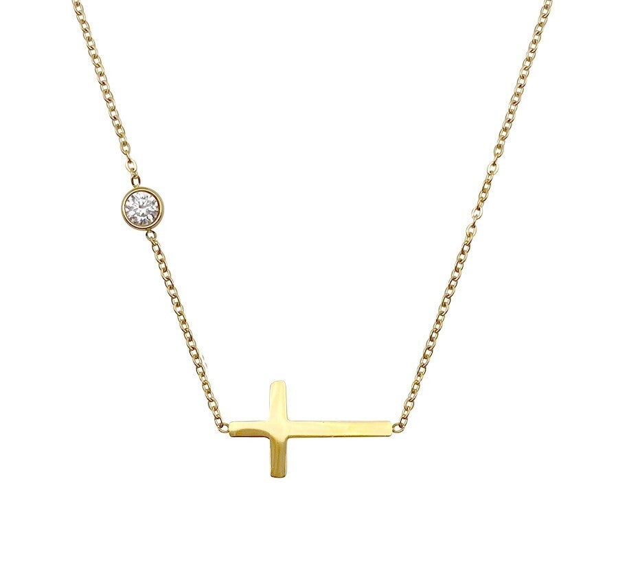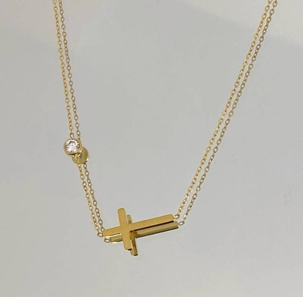 Ketting goud met kruisje en steentjes