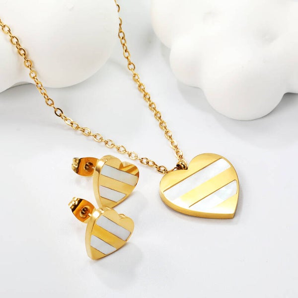 De Golden Heart Shine Set is een romantische en elegante sieradenset bestaande uit een ketting en oorbellen in hartvorm.