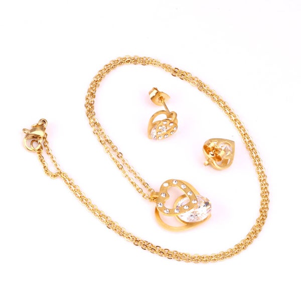 De Golden Heart Sparkle Set is de perfecte combinatie van romantiek en luxe. Deze set bestaat uit een ketting en oorbellen van hoogwaardig roestvrij staal, afgewerkt met een duurzame laag PVD 18K goud.