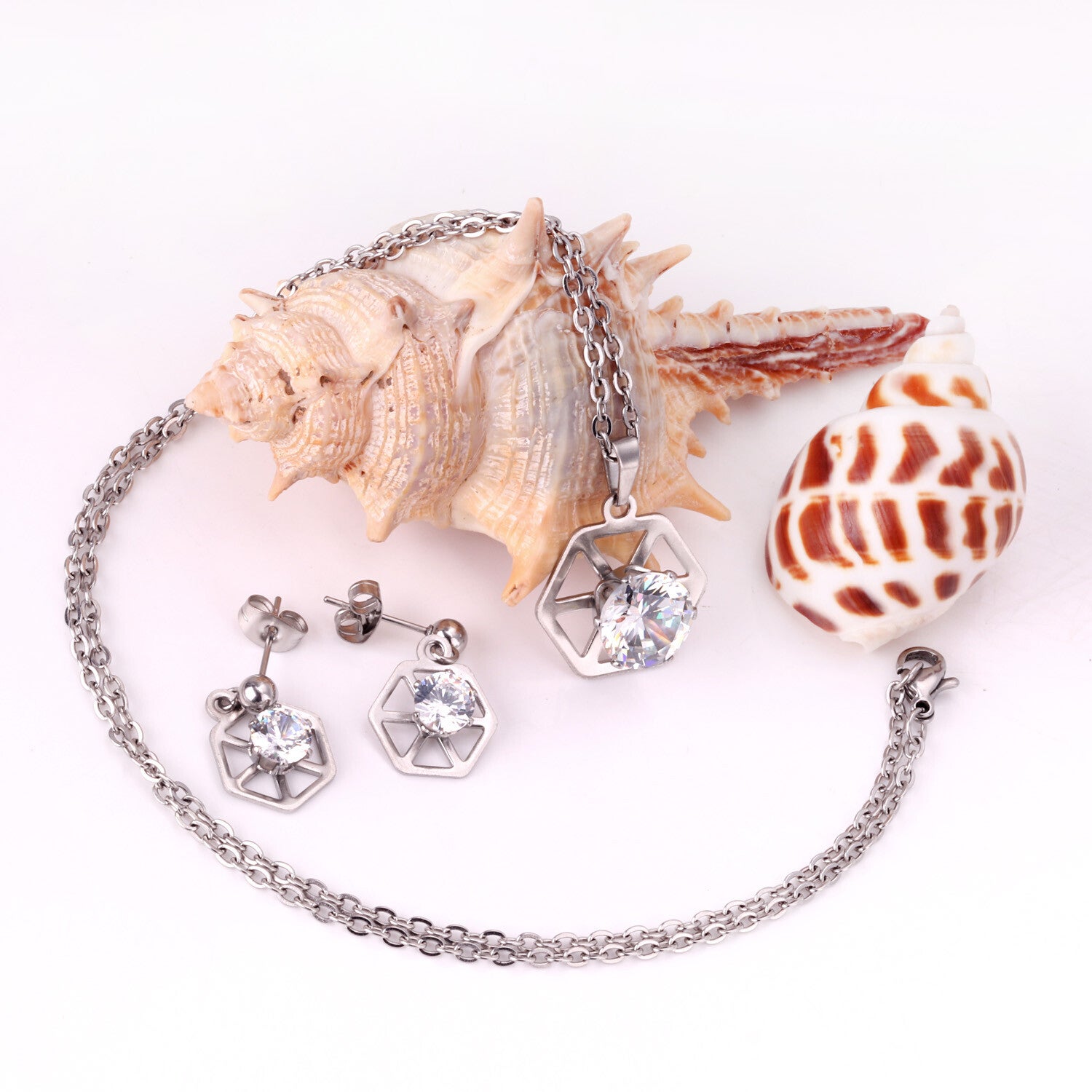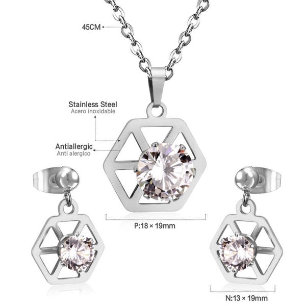 De Hexagon Sparkle Set is een moderne en stijlvolle sieradenset die bestaat uit een ketting en oorbellen.