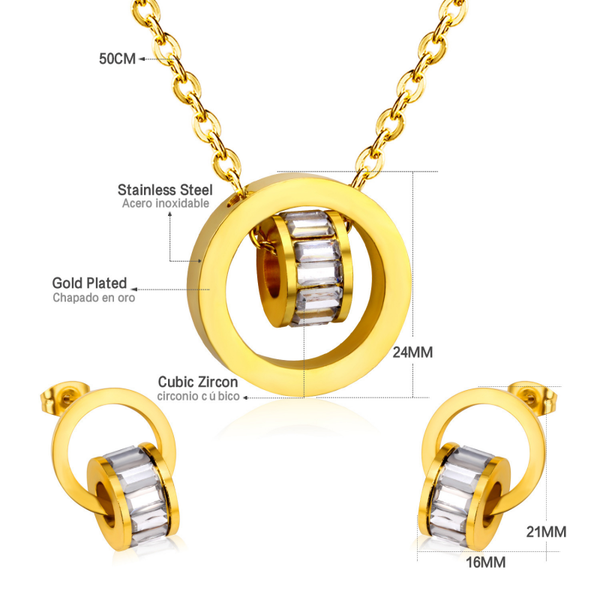 Gouden sieraden set rondjes ketting + oorbellen | Roestvrij staal | PVD 18K goud | Zirkoon