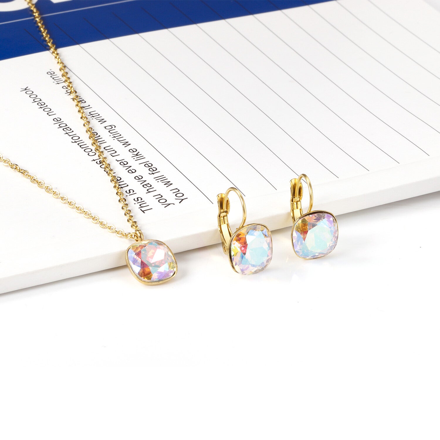 Regenboog Kristal Set – Ketting & Oorbellen – PVD 18K Goud & Roestvrij Staal