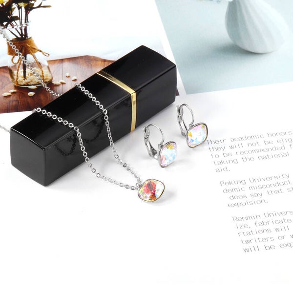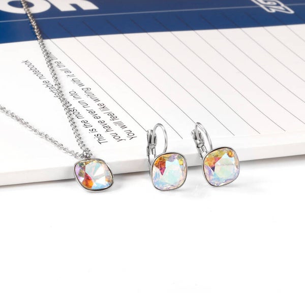 Regenboog Kristal Set – Ketting & Oorbellen – Zilver & Roestvrij Staal