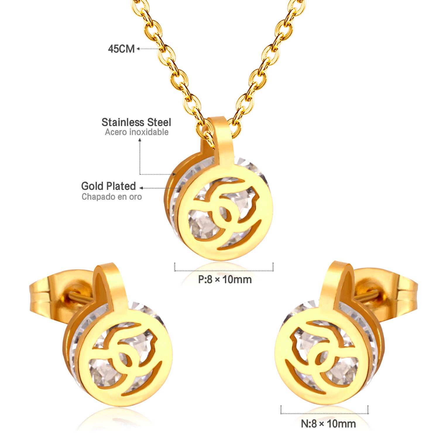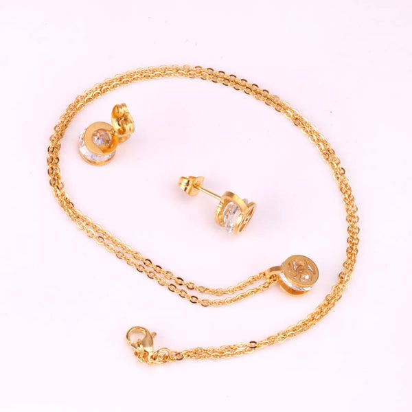 Ketting & oorbellen set goud roestvrij staal met zirkoon steen rond design